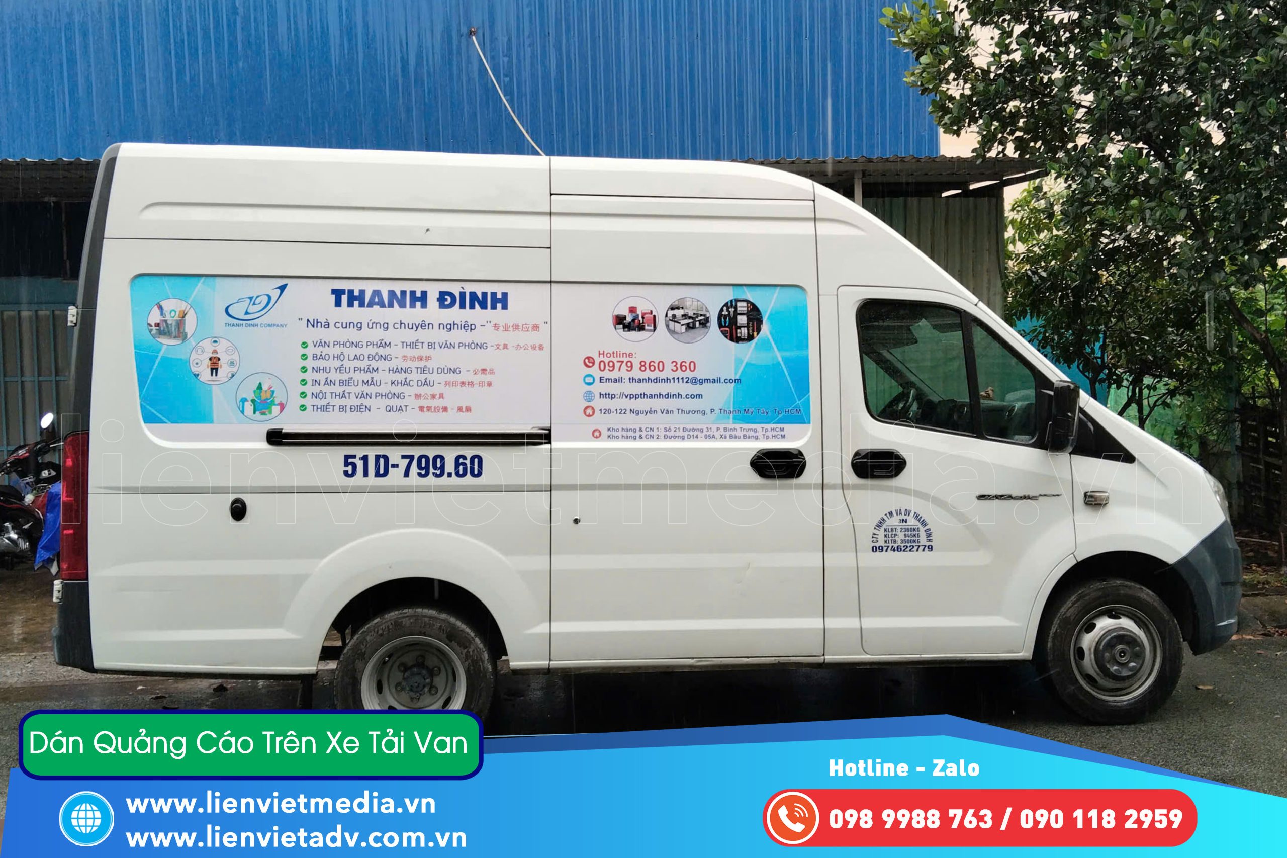 Dán decal quảng cáo trên xe tải Van là hình thức truyền thông ngoài trời (OOH) hiện đại, giúp thương hiệu xuất hiện mọi nơi, tiếp cận hàng nghìn lượt người mỗi ngày. Với diện tích bề mặt lớn, xe tải Van trở thành “biển quảng cáo di động”, mang thông điệp thương hiệu lan tỏa khắp các tuyến phố, khu công nghiệp, và trung tâm đô thị.